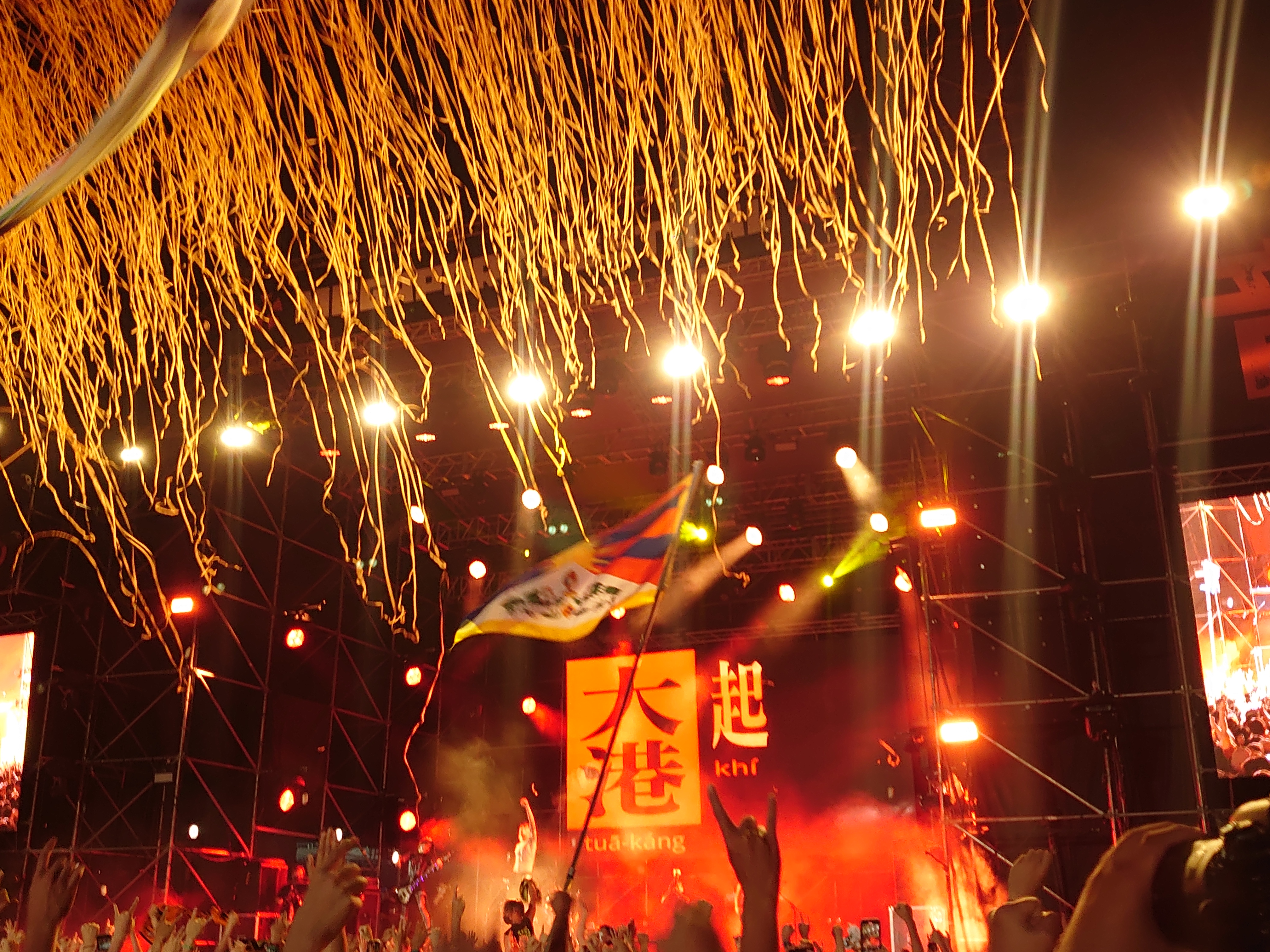 而從來不講”音樂歸音樂,政治歸政治”的獨立音樂圈,今年大港在政治議題上的聚焦與氛圍也有所不同。2019年的大港是韓國瑜剛上任、聽團圈也早已傳出了,主辦發遭到當時市政府刁難的種種傳言,可以感受到些許的不安氣氛。而面臨2018年底的地方首長選舉、部分年輕世代較支持的參選人落選,以及公投議題上的挫敗,也讓2019年的大港多了不少髒話火藥味。隨後,歷經了2019年香港反逃犯條例抗爭後情勢全面惡化、武漢肺炎、新疆人權問題檯面化等問題,今年感受比以往更為明顯的反中情緒;除了往年可以看到的台獨旗幟、同志六色彩虹旗以外,也多了”光復香港、時代革命”的黑旗、圖博的雪山獅子旗、東突厥運動的藍底星月旗在場內飄揚。這或許也彰顯,台灣可能是中華文化圈裡面,唯一繼續努力與中國極權抗衡的自由與多元文化堡壘了吧。