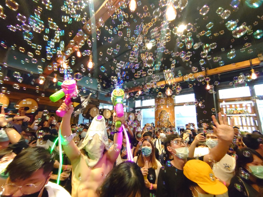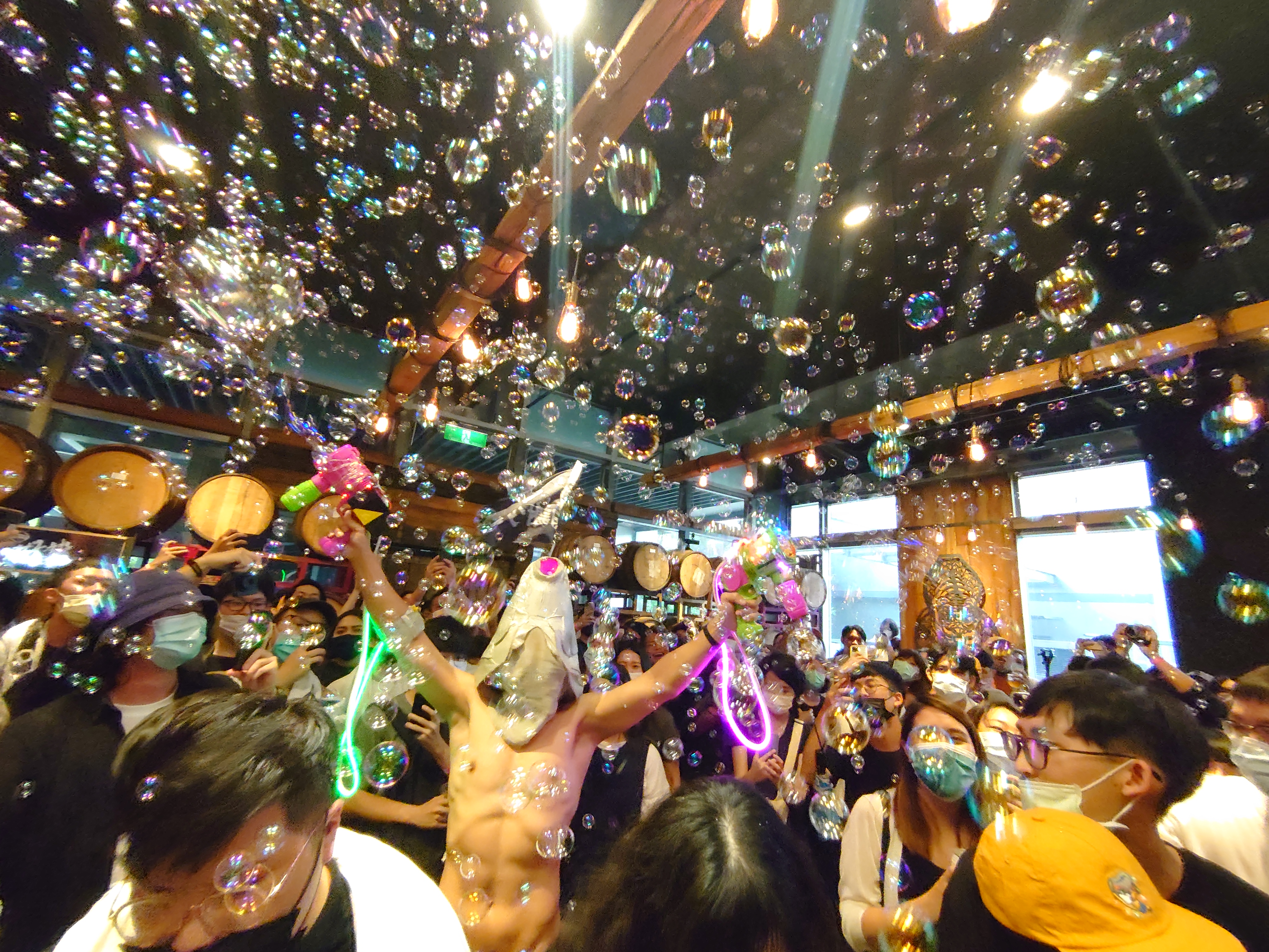 5/8位在汐止的台虎精釀實驗室,是拍謝少年新專輯《歹勢好勢》發片系列活動第一場。在這場限定100人的活動,一邊喝著拍謝限定版的”嗨口味”啤酒,一邊合唱衝撞;現場好幾把泡泡槍,滿室飛舞的泡泡,短暫而迷幻的午後演出。很慶幸在這樣充滿巨變的一年,見到一張自己喜歡已久的樂團交出如此驚豔的作品。